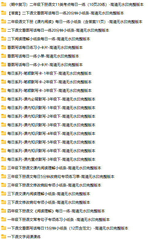 【汇总版】1~6年语文小纸条【下册】