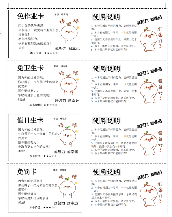 学生超喜欢的非物质奖励兑换券,可以修改编辑打印,N多款