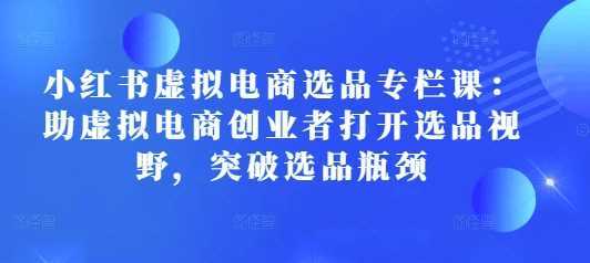 小红书虚拟电商选品专栏课:助虚拟电商创业者打开选品视野,突破选品瓶颈