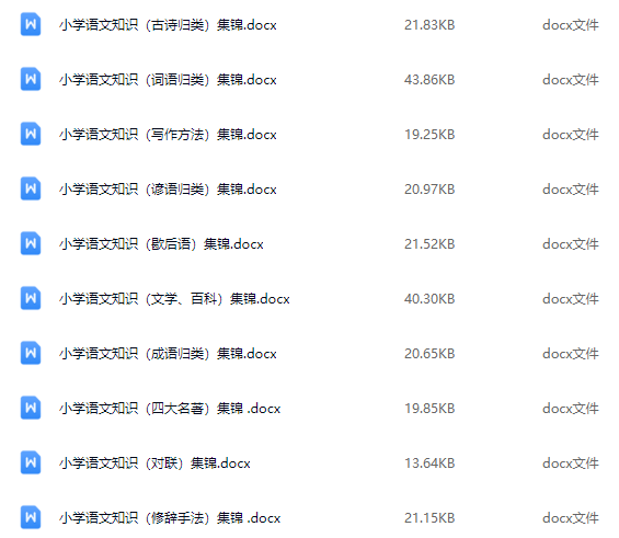 小学语文知识类汇总(成语,古诗,谚语,写作,修辞,名著等)