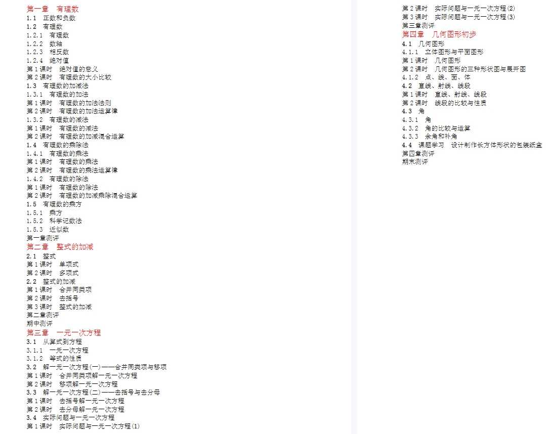 52份打包!初中同步测控优化设计数学七年级上册配人教版word,测试含答案,电子版PDF可打印【超高质量】