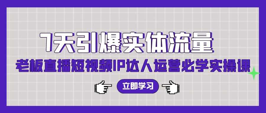 7天引爆实体流量,老板直播短视频IP达人运营必学实操课