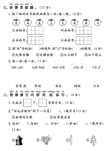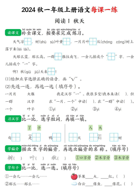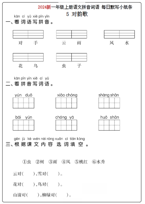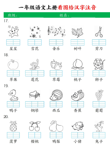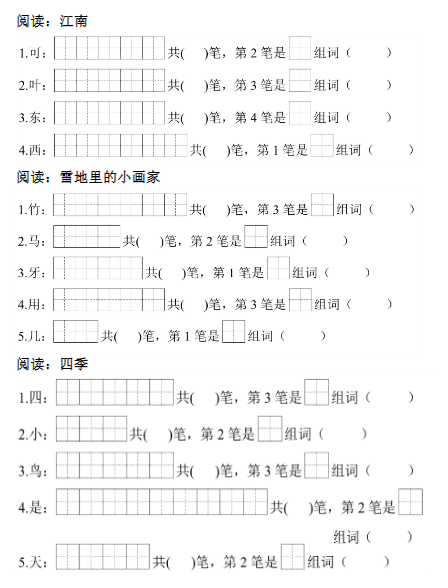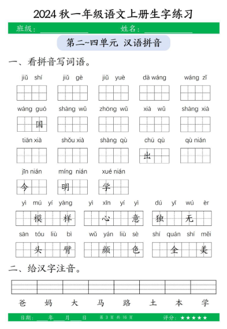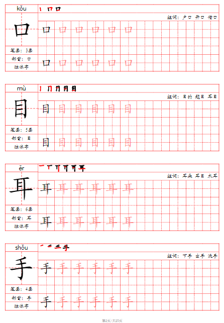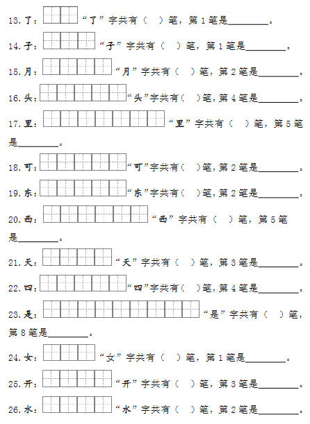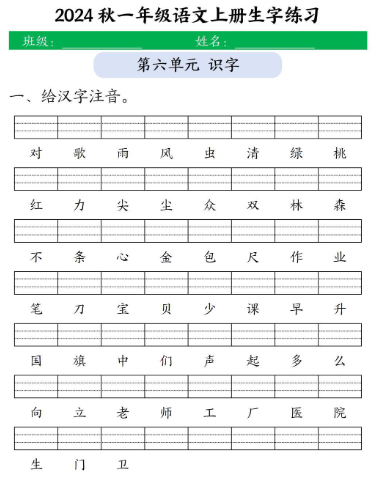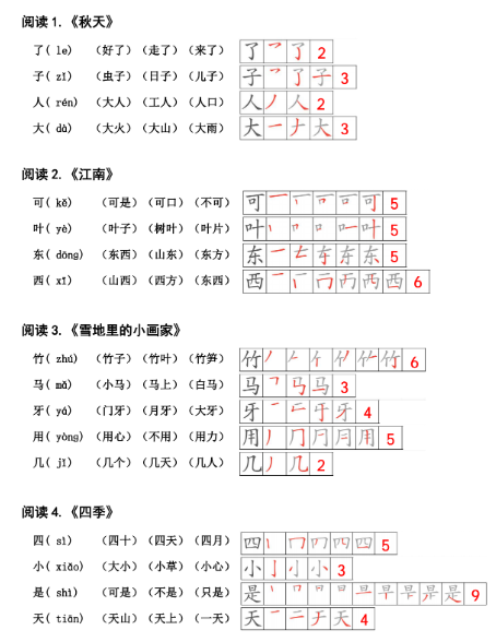 秋一上-写字表字帖(笔画+部首+笔顺+组词)