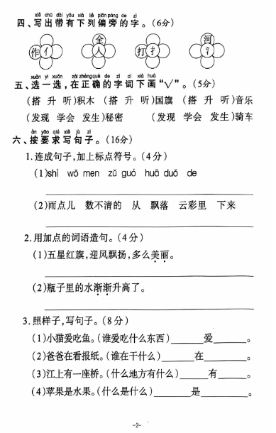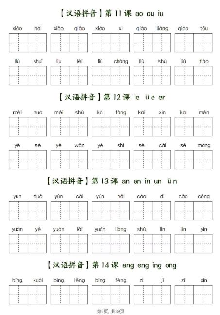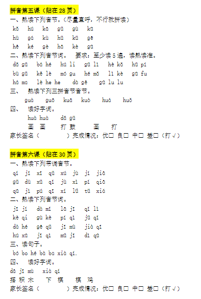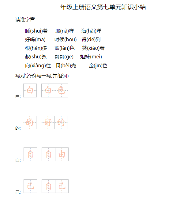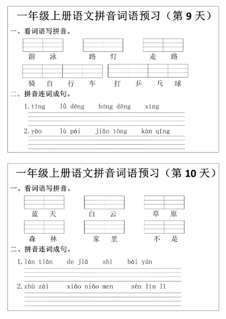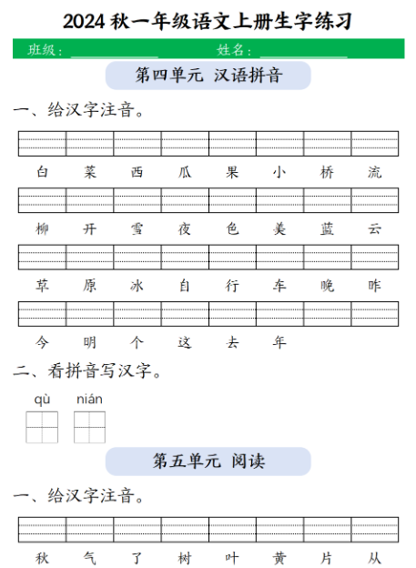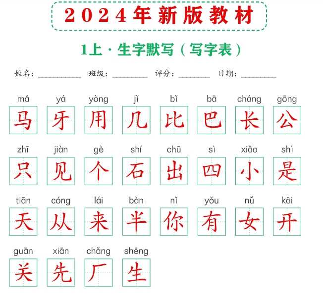 【2024秋季版新教材】 新版教材1上课后词语默写表【4页】