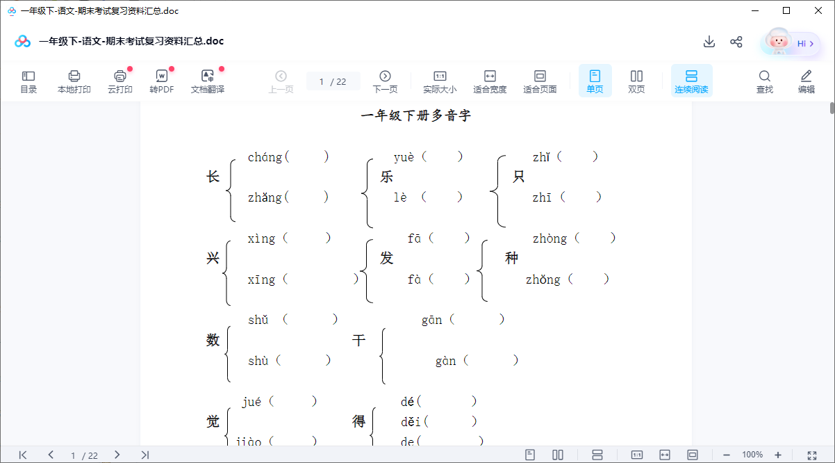 一年级下-语文-期末考试复习资料汇总【可打印】