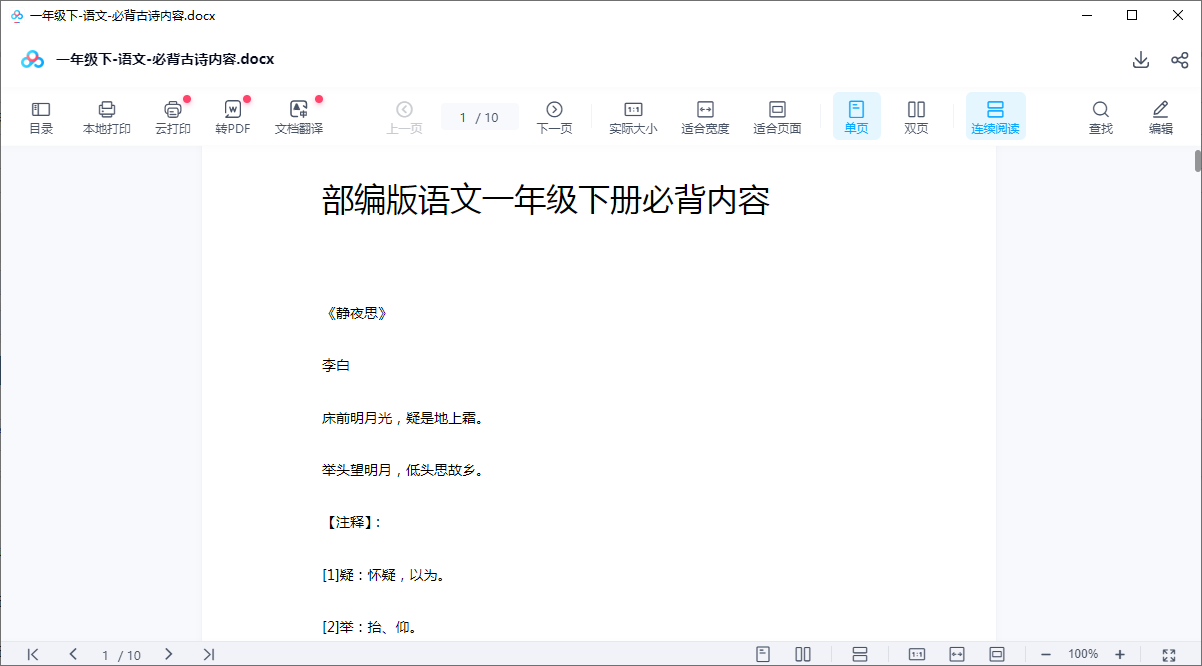 一年级下-语文-必背古诗内容
