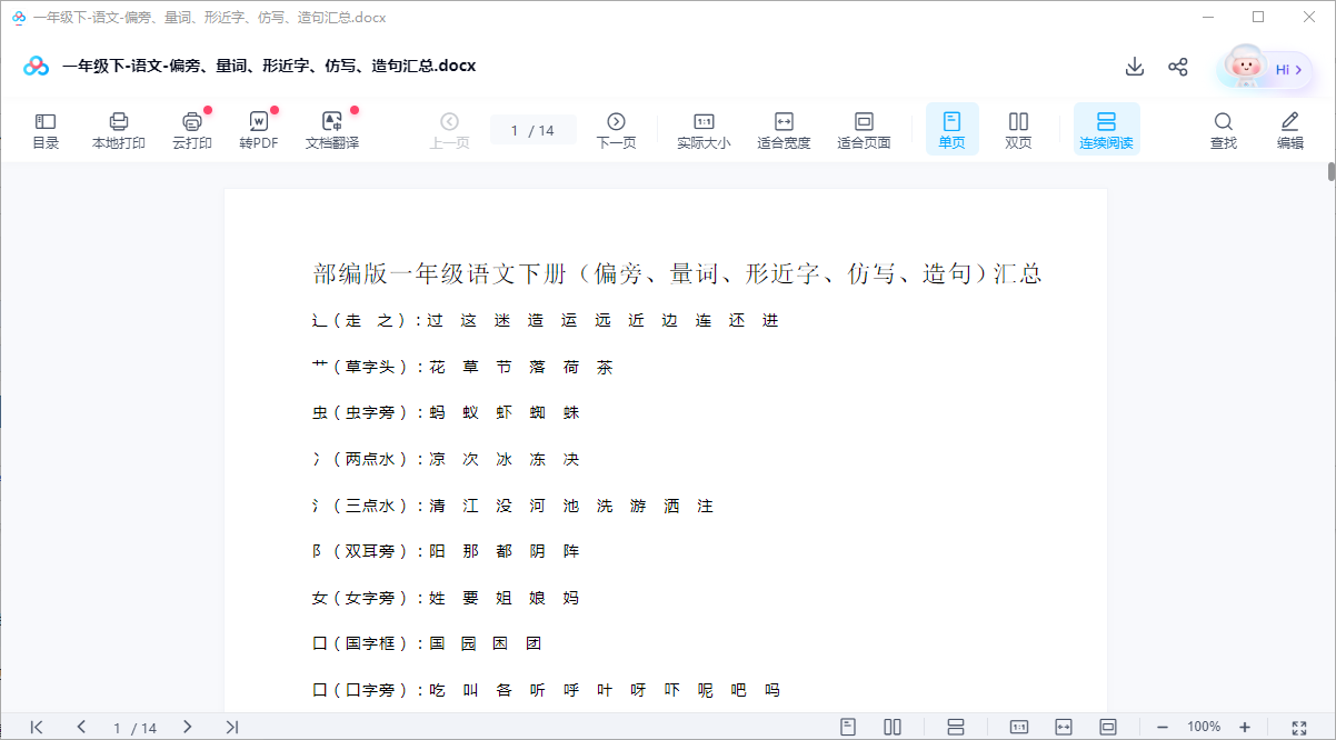 一年级下-语文-偏旁、量词、形近字、仿写、造句汇总