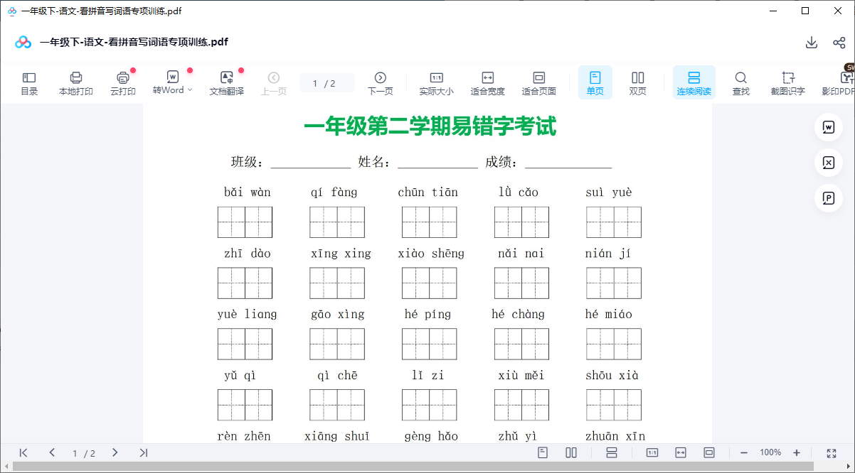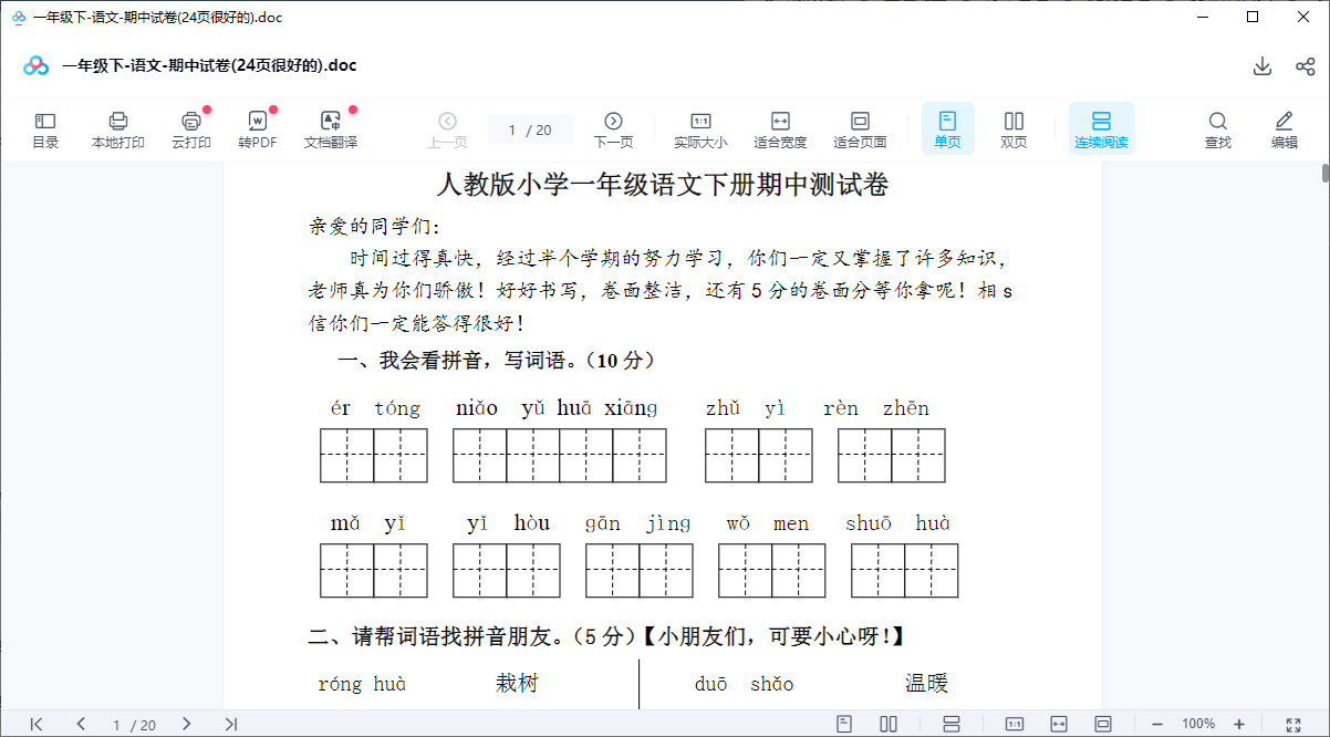 一年级下-语文-期中试卷(24页很好的)