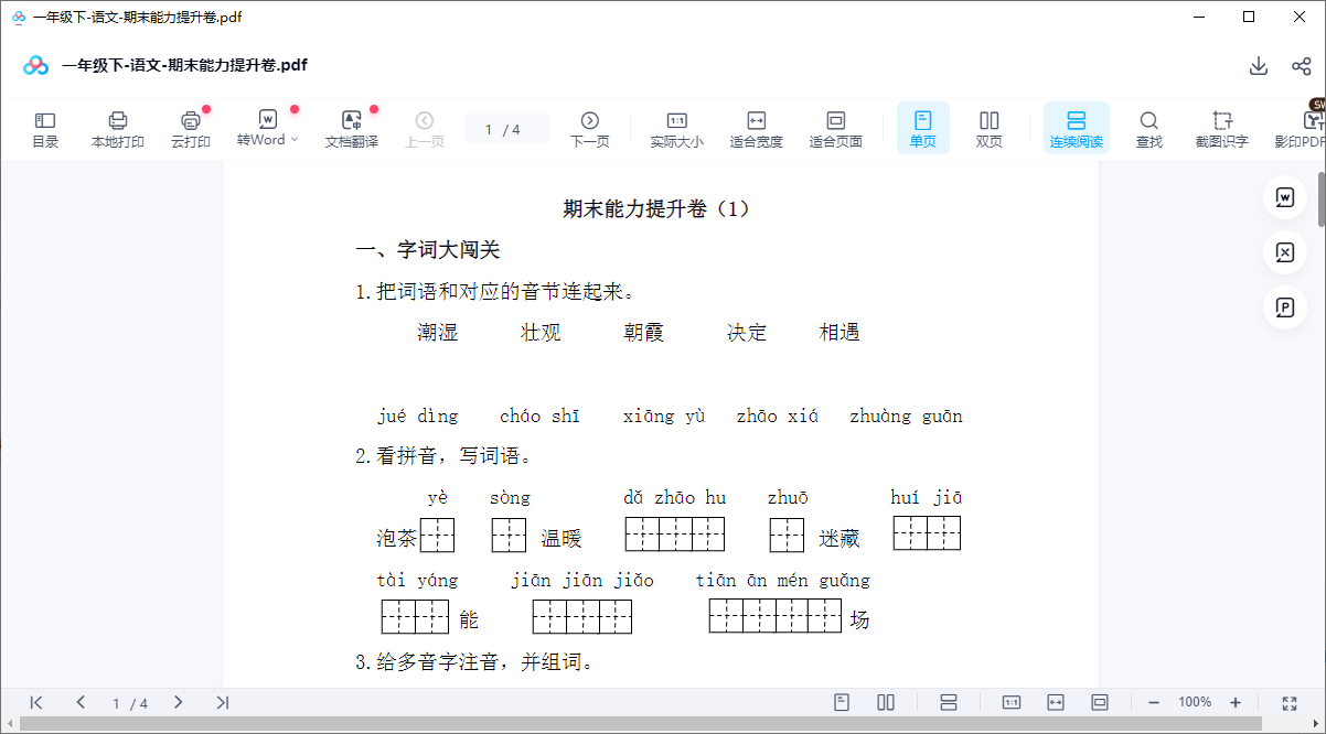 一年级下-语文-期末能力提升卷