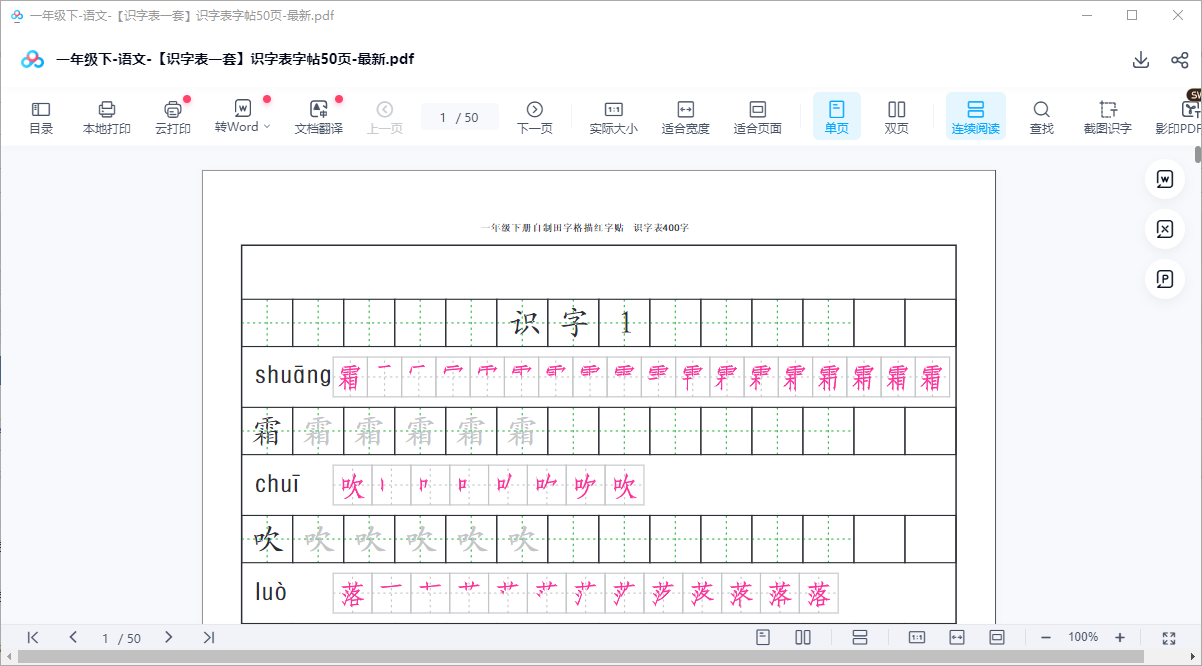 一年级下-语文-【识字表一套】识字表字帖50页-最新
