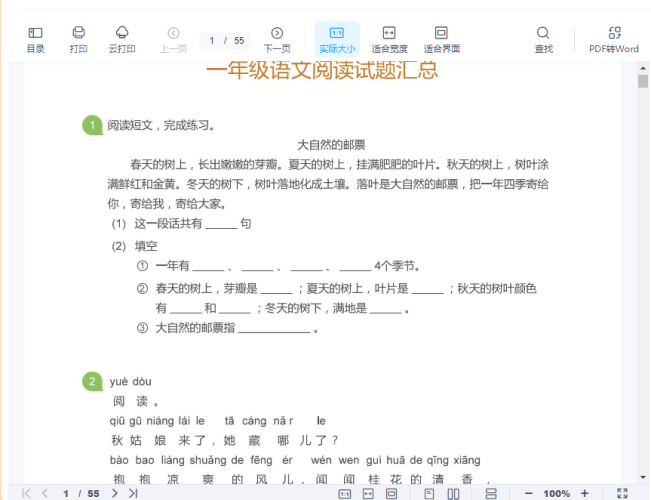 专项练习:一年级语文阅读100篇汇总(55页)