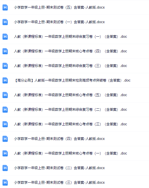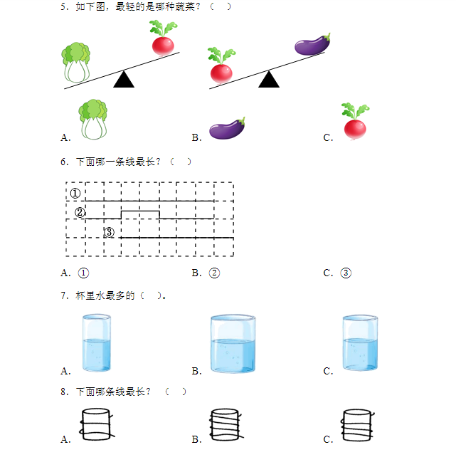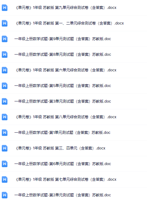 一年级上册 数学 苏教版1-8单元测试卷+答案