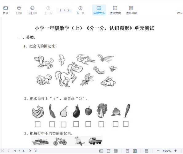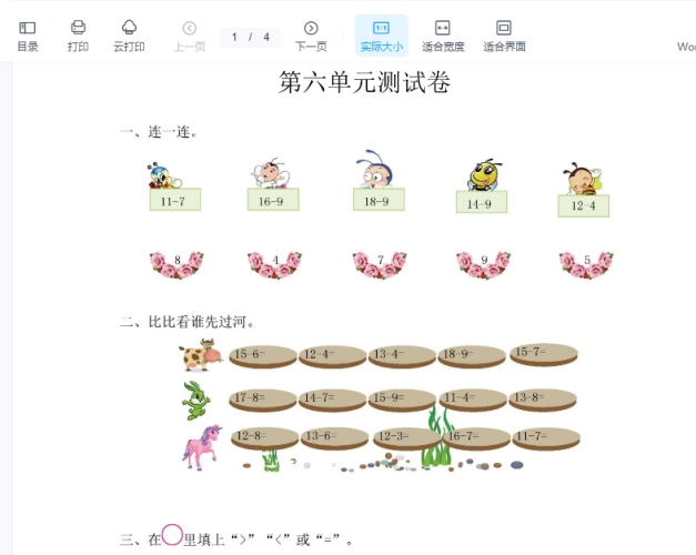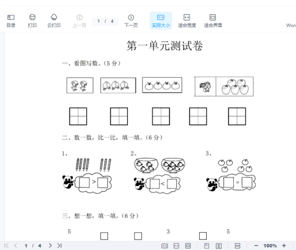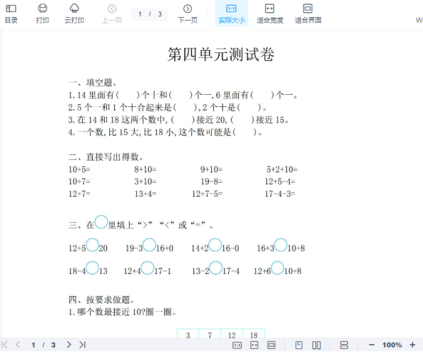 一年级上册-西师版-数学第四单元检测卷:3+答案