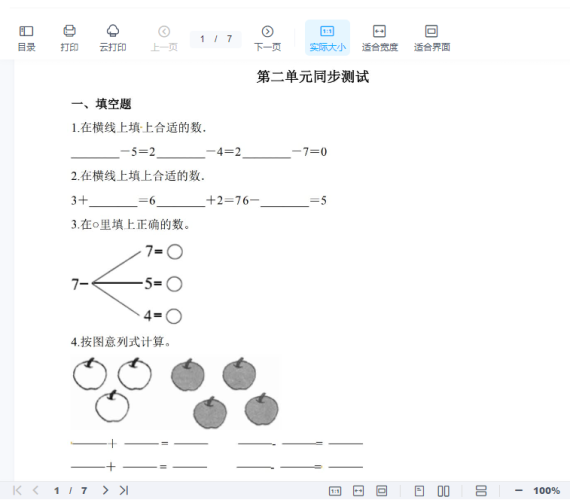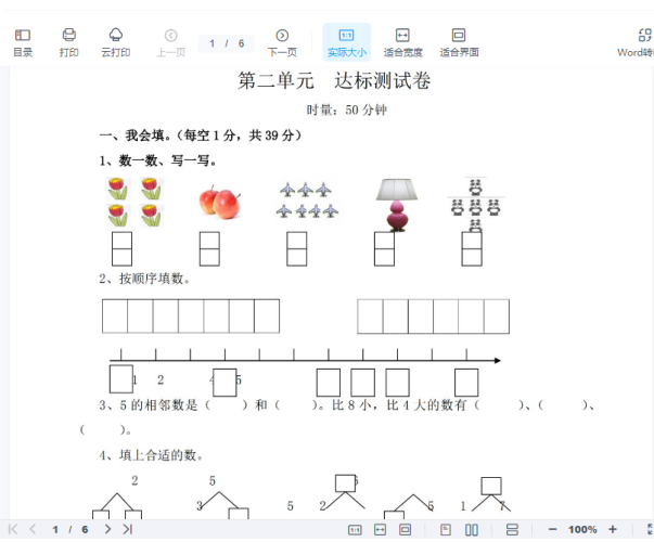 一年级上册-西师版-数学第二单元测试卷试题.1+答案
