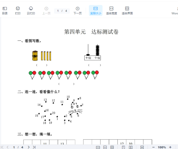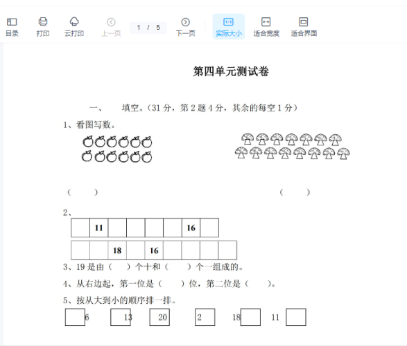 西师大版一年级上册数学第四单元测试-4. 11-20各数的认识