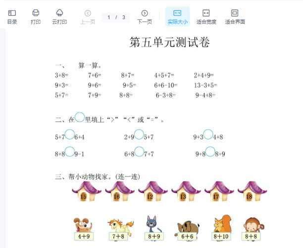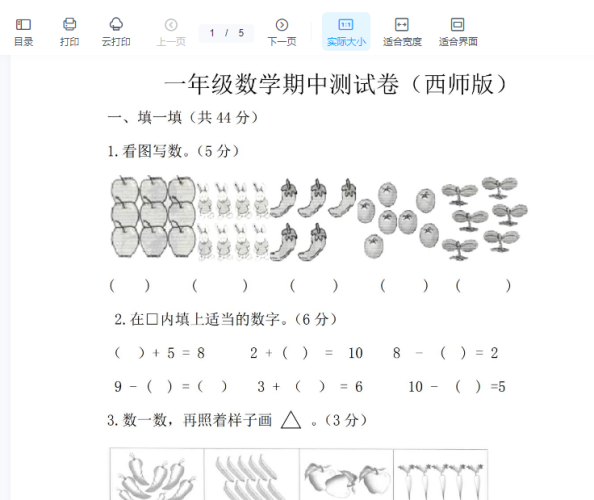 一年级上册-西师版-数学第五单元测试卷.1+答案
