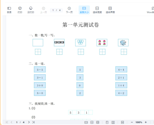 一上数学-人教版-同步练习-第二单元 6~10的认识和加、减法