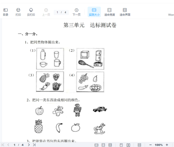 一年级上册-西师版-数第一单元测试卷试题.2+答案
