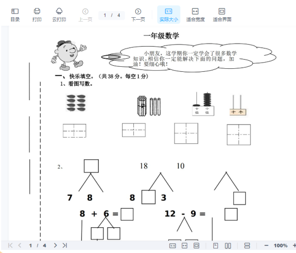 一上数学-人教单元测试卷-第四单元检测卷.doc