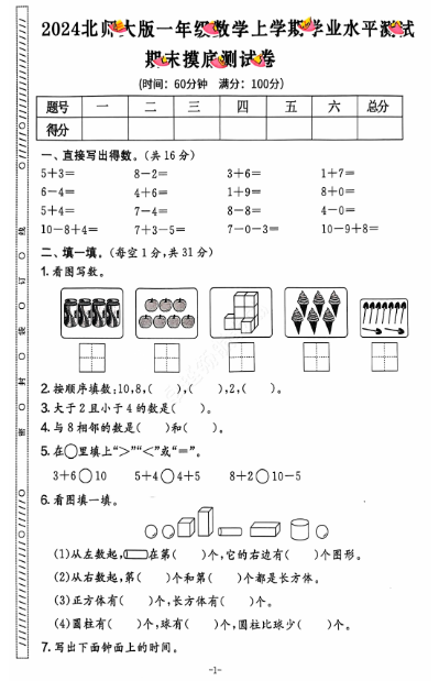 1000份打包!一年级上册数学试卷练习汇总(含答案),电子版PDF可打印【超高质量】