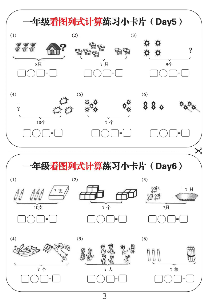 24秋一年级上册数学期末每日一练小纸条(纯图)