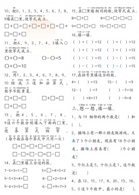 20以内加减法之凑十法、破十法、平十法图解练习题