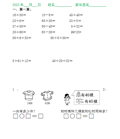 一升二数学暑假作业(每日一练)