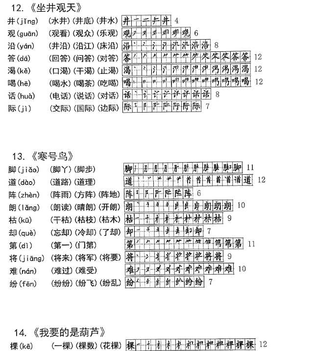 【2024秋季版新教材】二上语文 生字组词笔顺【课课贴】【9页】