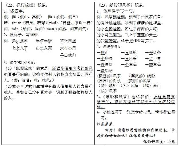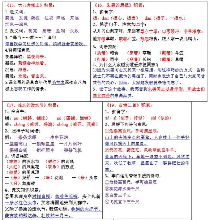 语文二【上】总结类资料(背读类)