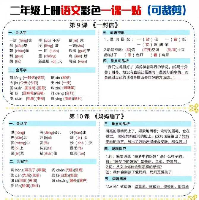 【2024秋季版新教材】二上语文【课课贴】彩色版【8页】