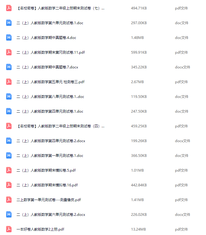 二年级上数学单元+期中+期末全试卷合集(人教版)