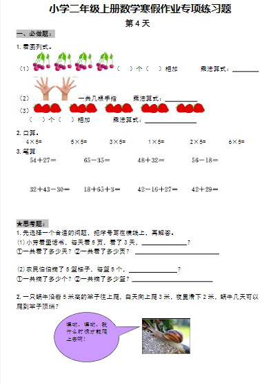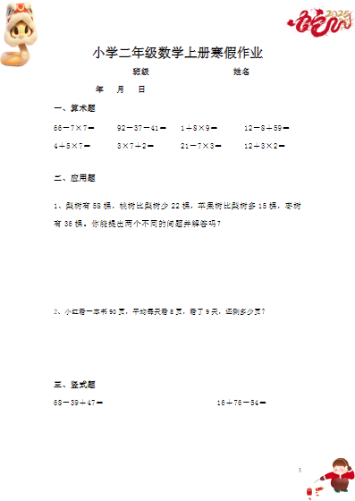 2025二年级数学寒假作业