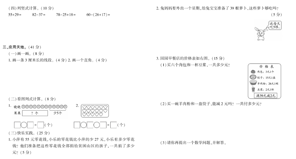 人教版二年级数学上册试卷、练习题-期末模块过关卷(四)+含参考答案.docx