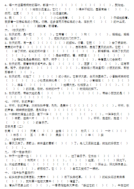 三(上)语文:根据课文内容填空全册