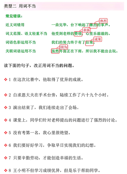 三上语文期中修改病句专项练习