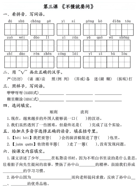 三上语文【看拼音写词语】