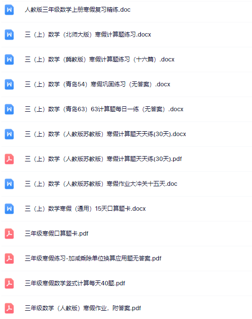 2025春三年级数学【寒假作业(训练题26页)】