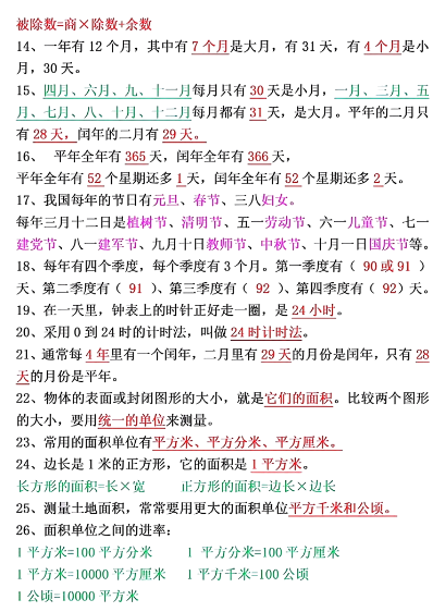 三年级数学下册 必背26个重点知识