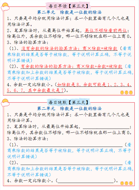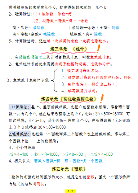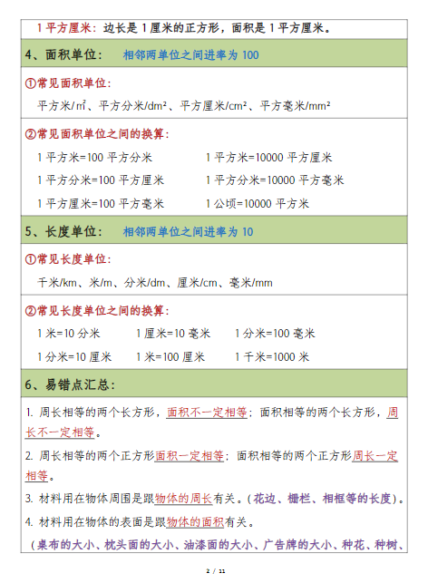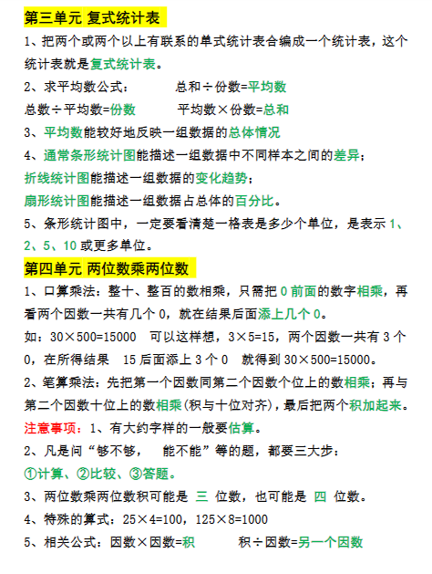 三年级数学下册必背知识点整理(早读晚默)