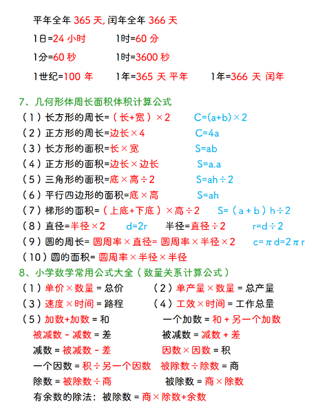 三年级数学下册必背公式大全
