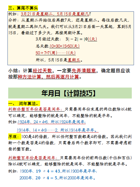 三年级数学下册 年月日重点知识汇总