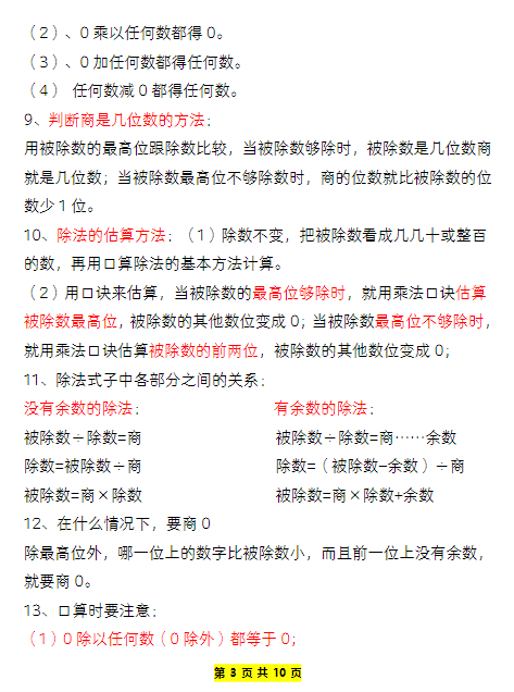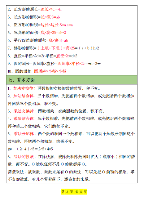 2025春《重点必背公式概念汇总》(数学3下6页)