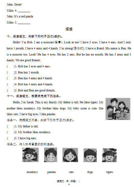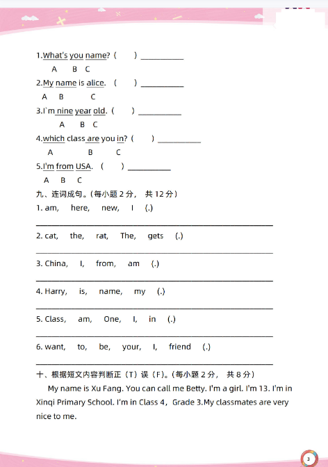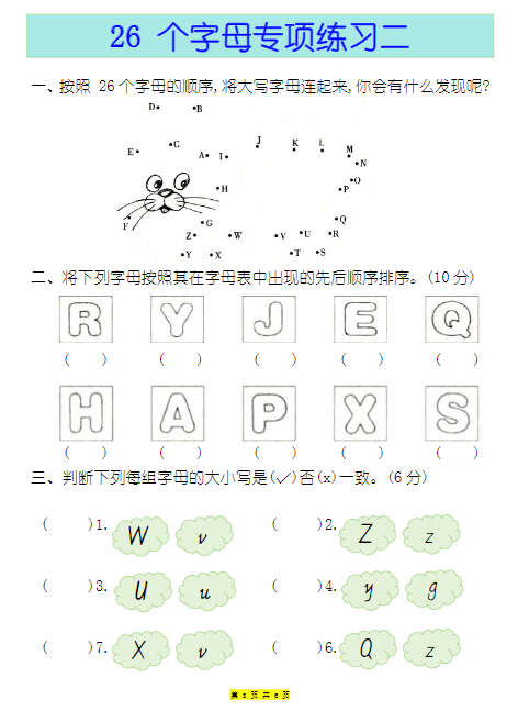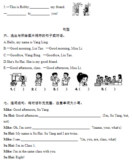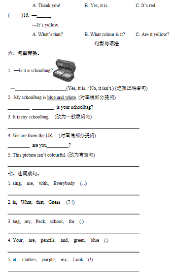 三(上)英语(人教PEP)1-6单元基础过关练习