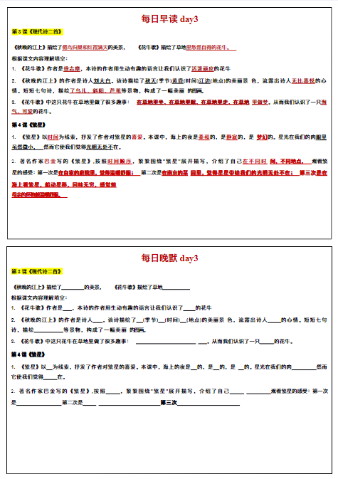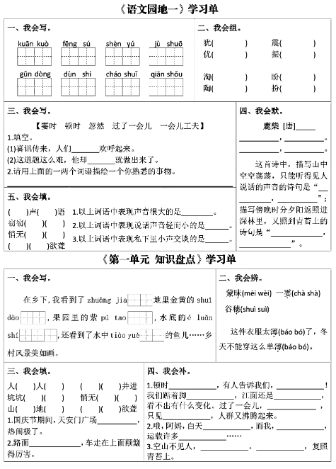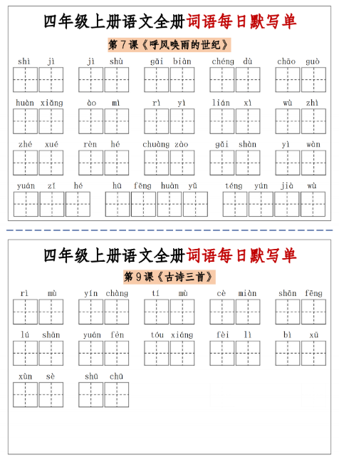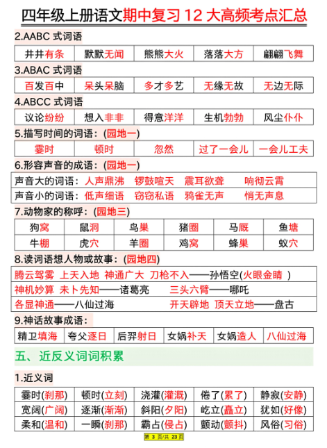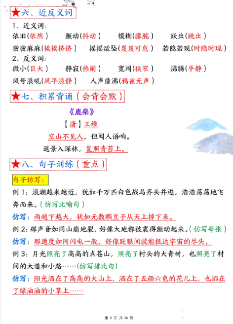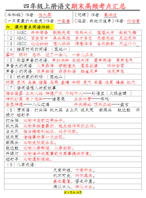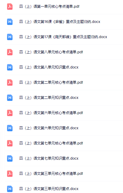 【抖音资料】四上语文1-8重点与核心考点精品集大全