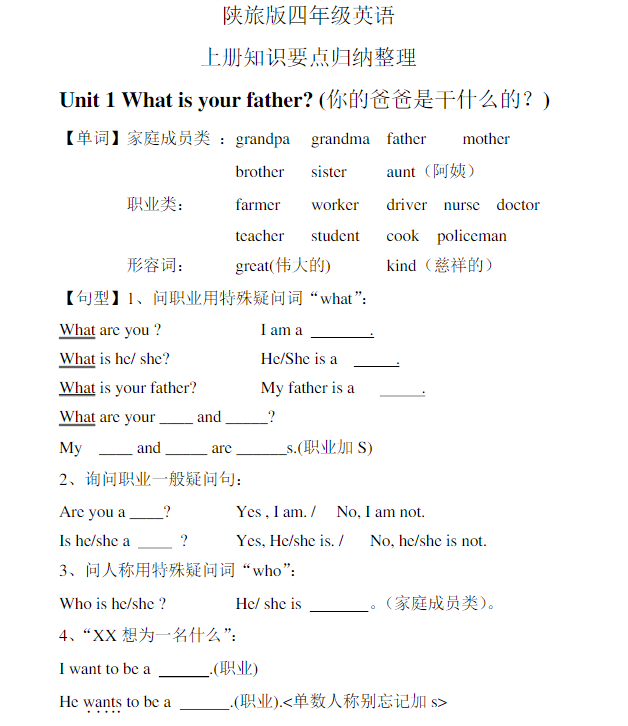 四上【英语】【陕旅版】知识点归纳