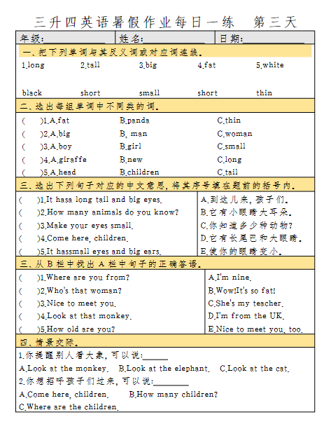四年级英语每日一练