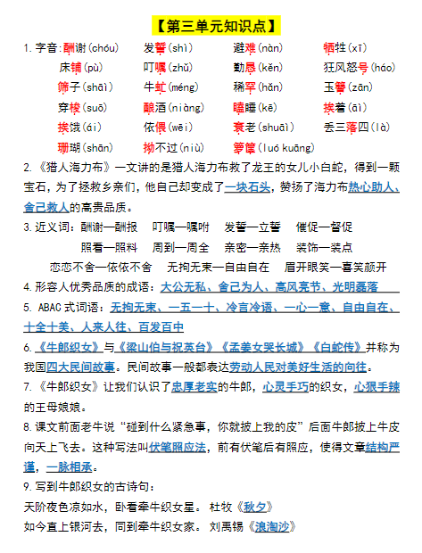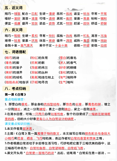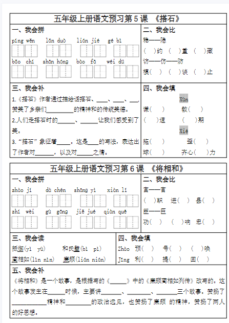 【课课贴】5年级上册每课重点生字组词认读贴,贴在课本空白处
