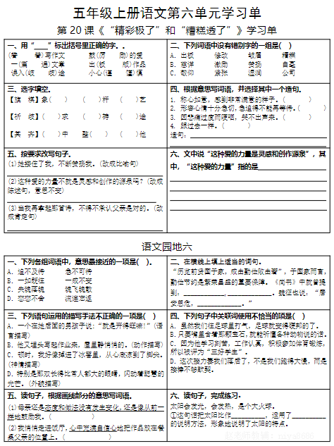 【语文五上抖音资料】 期中检测试卷精品集大全