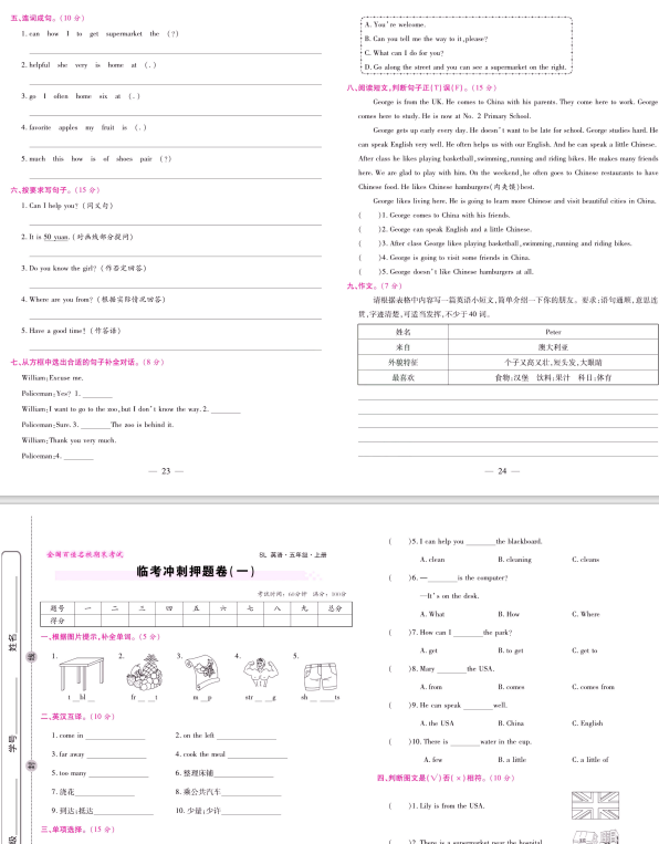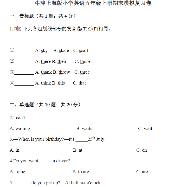 1000份打包!五年级上册英语试卷练习汇总(含答案),电子版PDF可打印【超高质量】