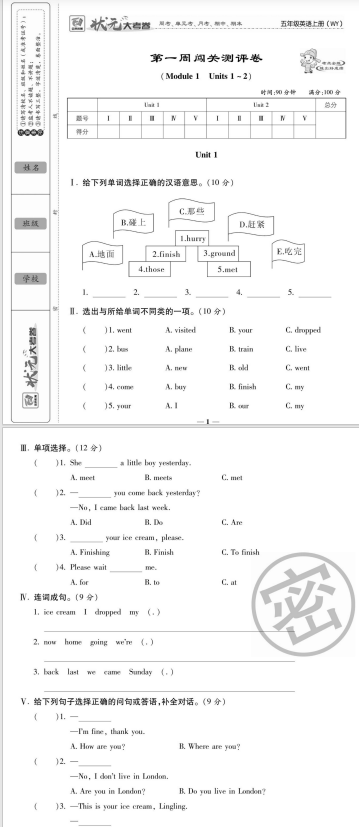 2份打包!五年级英语【译林版】试卷册类【超高质量】